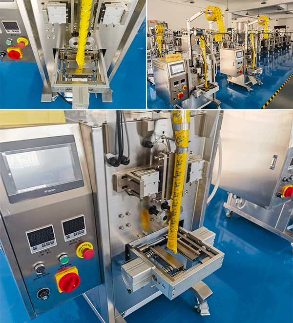 小立式液體包裝機(jī)的工作方式不同于其他自動(dòng)化設(shè)備,它采用了活塞泵,通過活塞在泵泵腔內(nèi)的往復(fù)運(yùn)動(dòng),精確控制每次吸入和排出的奶油體積,可完成各種流動(dòng)性強(qiáng)的液體物料包裝。自動(dòng)化奶油包裝機(jī)的定量方式,是根據(jù)感應(yīng)稱重器來執(zhí)行運(yùn)作,物料通過下料裝置進(jìn)入稱重平臺(tái)后,在達(dá)到預(yù)設(shè)的參數(shù)值時(shí),控制系統(tǒng)會(huì)發(fā)出停止供料的信息,可確保包裝的順利。小立式液體包裝機(jī)的制袋過程是在制袋工位,通過成型器,在成型器的作用下薄膜被折疊成筒狀,并結(jié)合縱封裝置快速進(jìn)行加熱加壓,使其包裝袋形成包裝袋,然后利用熱封技術(shù)在物料充填完成后進(jìn)行封口動(dòng)作。