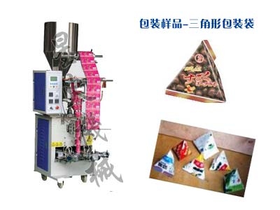 適合于麥片、瓜子、果凍、膨化食品、蝦條、花生、爆米花、白糖、鹽等顆粒狀、短條狀、液體狀食品的三角形包裝。